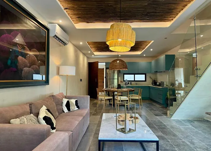 De gesitueerde in Tulum Pueblo Kataluum- Luxurious Eco-Chic Ph With Pool Villa Tulum Pueblo heeft een privézwembad voor de ontspanning van de gasten en ligt binnen 3 km afstand van Alumbra Mercado Orgánico. De gelegen in de Zama wijk villa biedt uitzicht op het zwembad en nodigt gasten uit om het Maya Ruïnes van Tulum te bezoeken, op 10 minuten rijden hier vandaan.